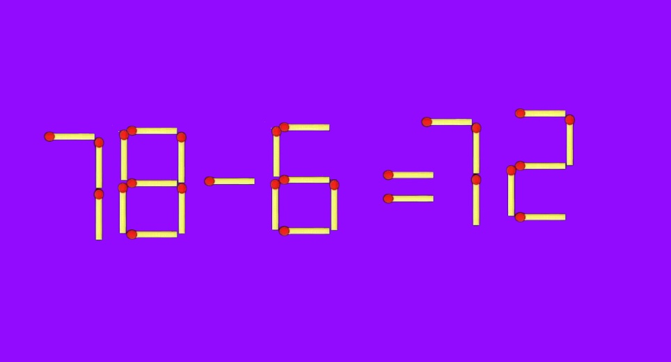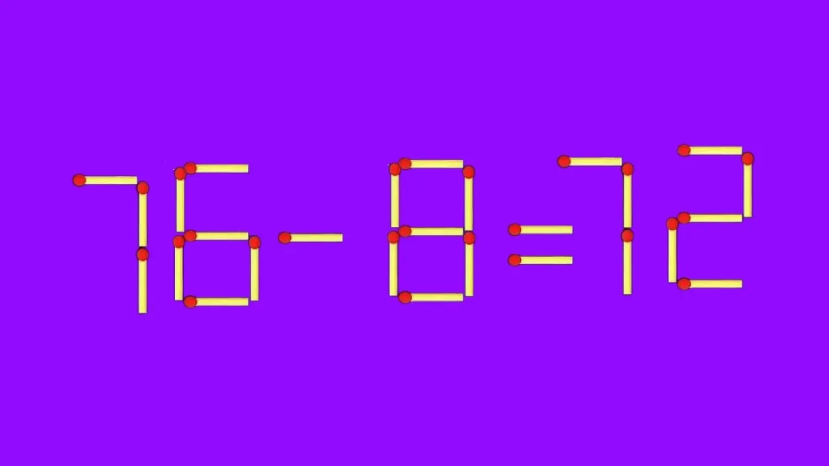 Взгляните на иллюстрацию, в равенстве «76-8=72» допущена ошибка. Достаточно передвинуть всего одну спичку, и вычисления станут верными. Но отыскать нужный способ смогут только обладатели стратегического мышления.