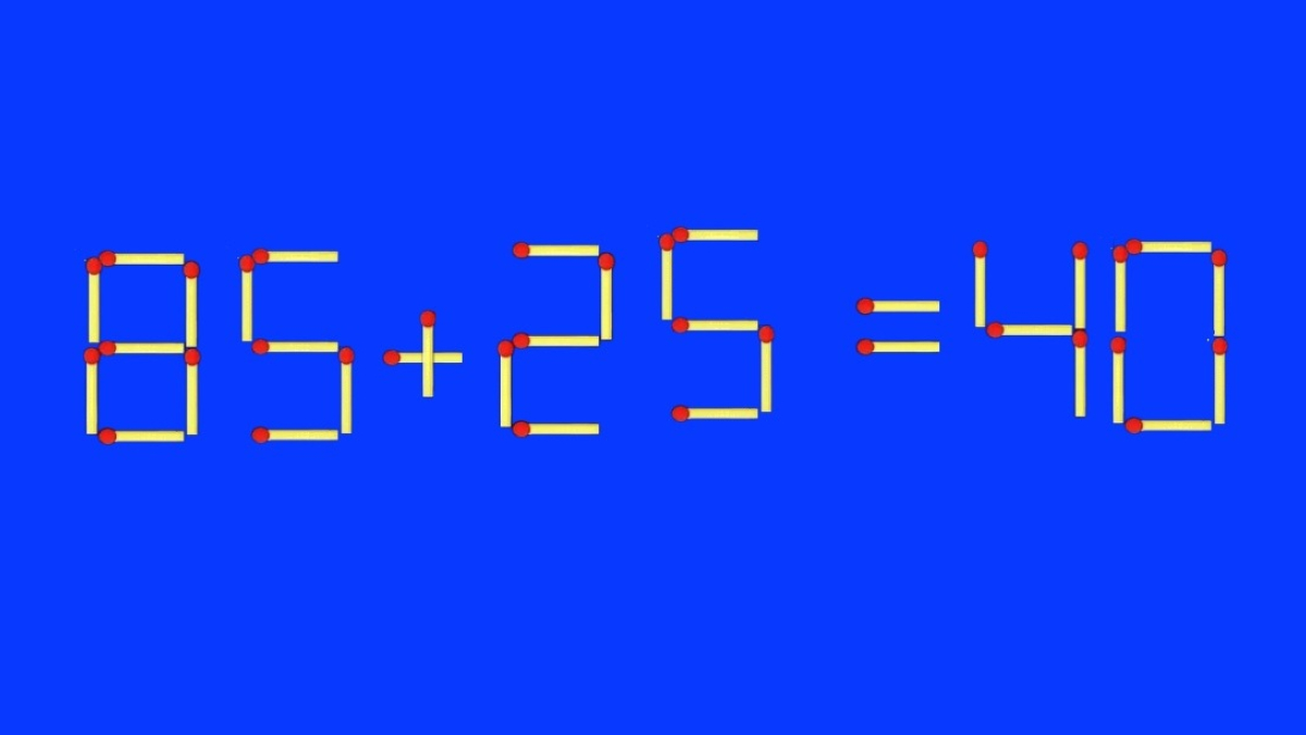 Внимание на иллюстрацию. В равенстве «85+25=40» намеренно допущена ошибка, но внимательные личности без труда её исправят. Переместите всего один элемент в этой записи, и новый пример законы арифметики нарушат не будет.
