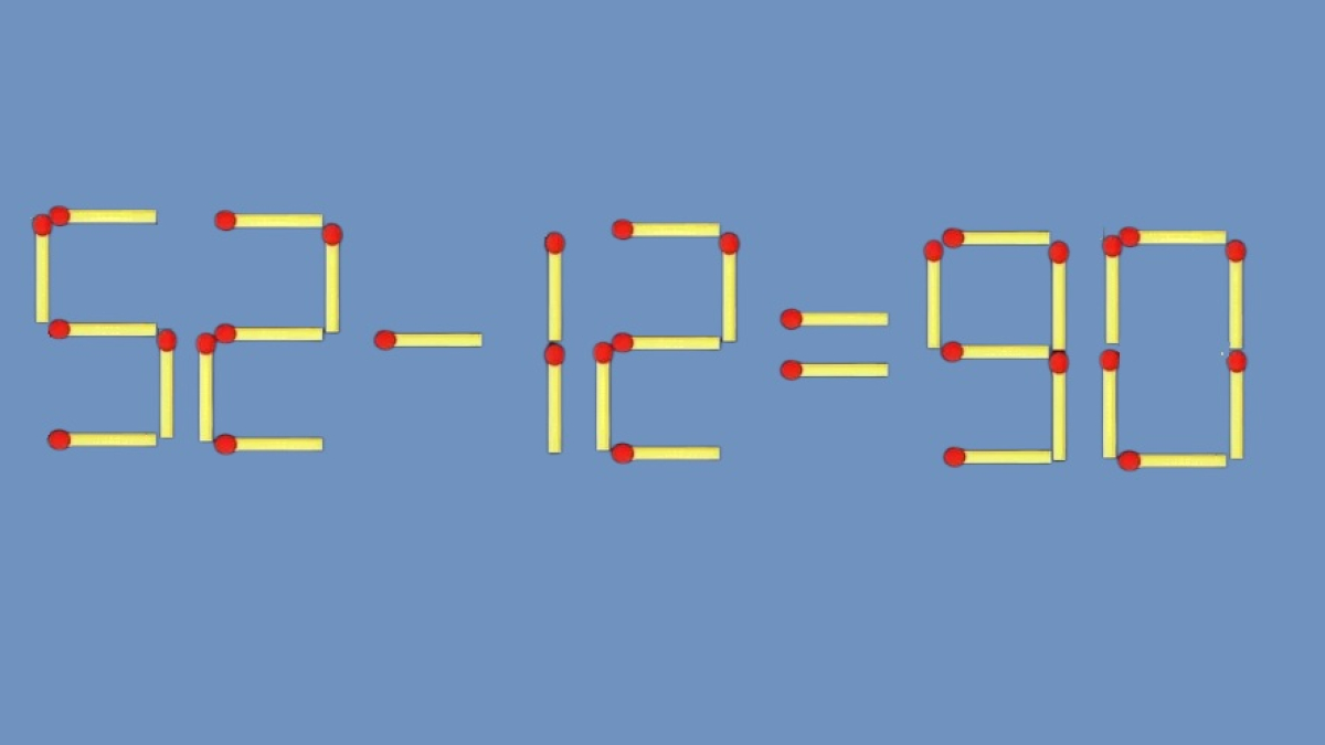 Предлагаем вам справиться с загадкой, которая требует пространственного мышления. На рисунке показано равенство «52-12=90», в которое закралась ошибка. Переметите всего одну спичку в этой записи, и пример станет верным.