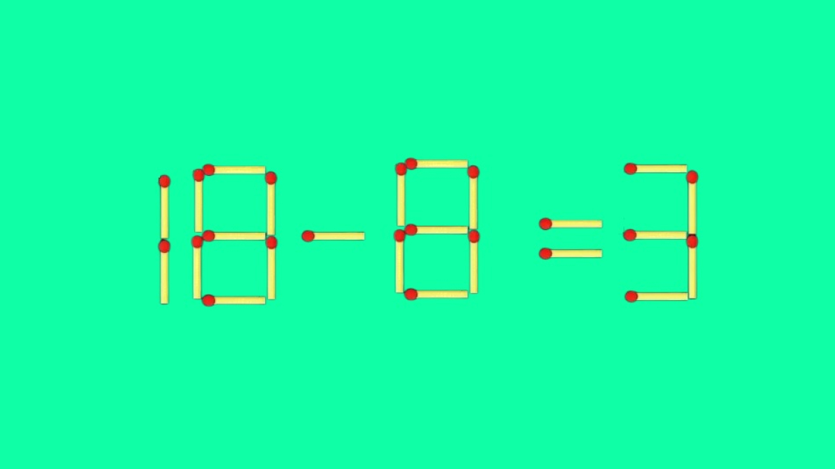 Не теряйте даром времени, вас ждёт рисунок с заданием. Из спичек составлена запись «18-8=3», но решение оказалось неверным. Найдите возможность исправить равенство, переместив только один элемент.