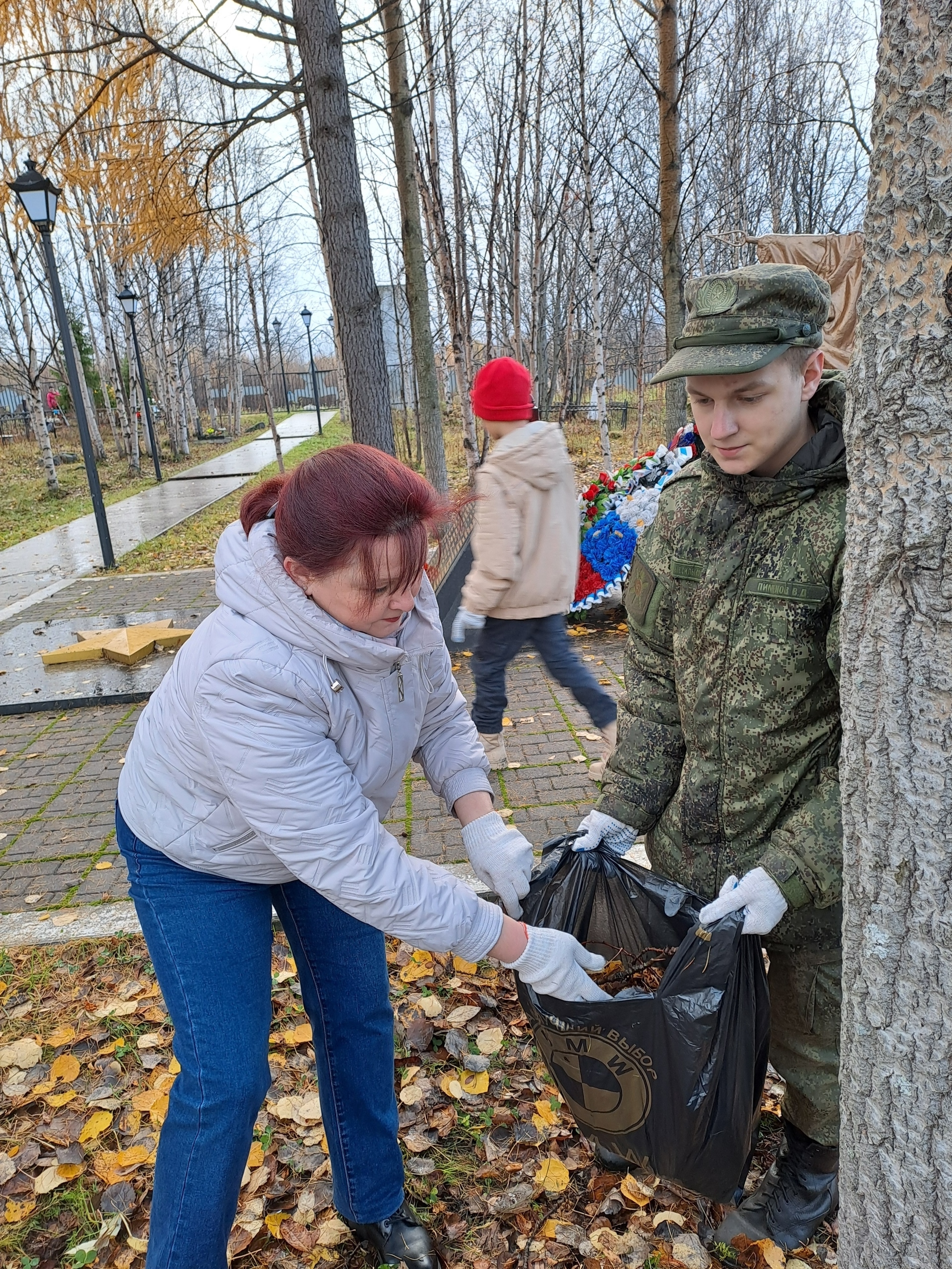 Участники субботника очистили мемориал от листвы и мусора, привели территорию возле обелиска в порядок, почтили минутой молчания память Героя.
