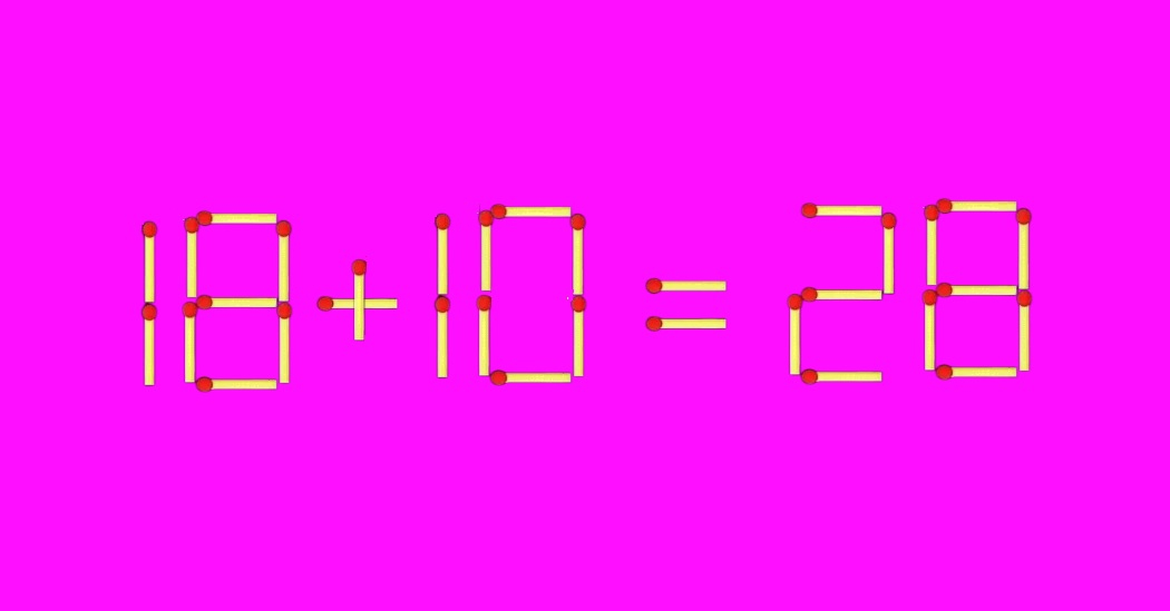 Испытайте свои силы прямо сейчас. На иллюстрации вы видите равенство «78-10=28», вот только верным его не назовёшь. Передвиньте всего одну спичку в записи так, чтобы вычисления стали верными.