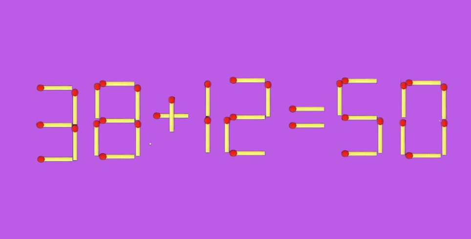 Представляем вашему вниманию визуальную головоломку. В равенстве «98-12=50» намеренно допущена ошибка, необходимо исправить запись. Передвиньте одну спичку так, чтобы пример решался верно. Остальные элементы оставляем без изменений.
