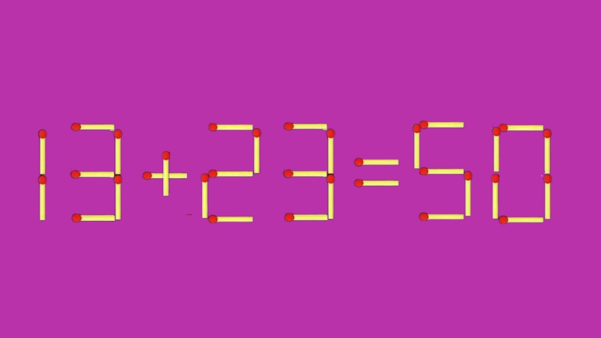 Предлагаем вашему вниманию небольшое испытание. На изображении вы видите равенство «13+23=50», в которое закралась ошибка. Но стоит передвинуть всего одну спичку в этом примере, как вычисления сразу станут верными.