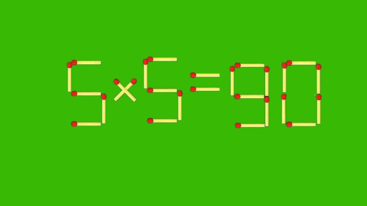 На иллюстрации вас ждёт равенство «5×5=90», которое вгоняет в краску учителей математики. Исправить ошибку в вычислениях несложно, достаточно переместить всего одну спичку. Узнаем, не дремлет ли ваша смекалка.