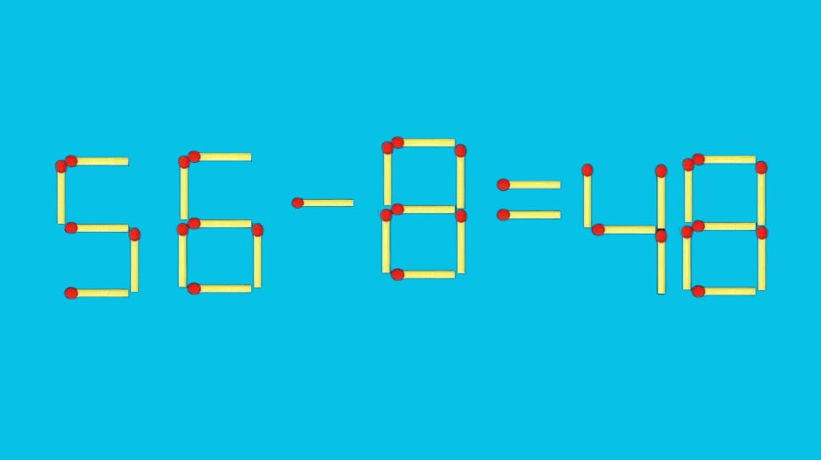 Показываем решение для самых нетерпеливых. Вот мы забираем спичку из девятки и правим «6» на «8». Смекалка и вам поможет собрать корректную запись «56-8=48», поверьте в себя!