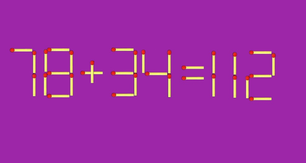 Предлагаем вашему вниманию спичечную перестановку. На иллюстрации вы видите равенство «78+34=42», в котором допущена ошибка. Переместите всего одну деталь так, чтобы пример решался верно.