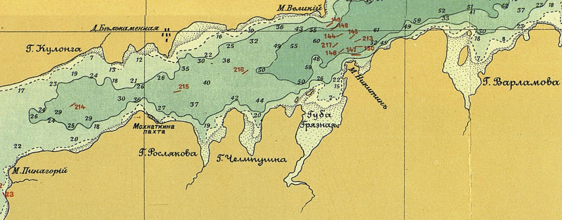 Часть карты Кольского залива 1908–1909 года, источник: kolamap.ru