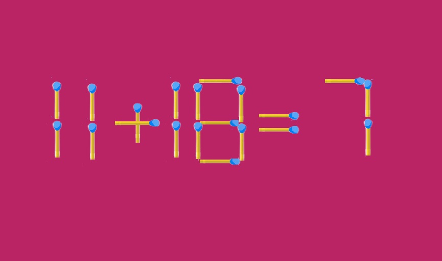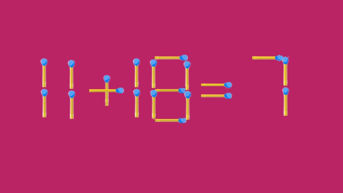 Проверим, удастся вам подключить свою сообразительность к выполнению такой задачки. На иллюстрации вы видите пример «11+18=7», от таких вычислений становится не по себе. постарайтесь исправить ошибку в записи, переместив всего одну палочку.