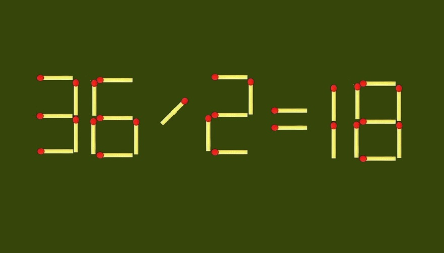 Почувствовали, как разогревается ваш интеллект? посмотрим. каких результатов вам удалось добиться. Следовало превратить восьмёрку в цифру «6», а свободную спичку отправить покорять ответ. Верное равенство «36/2=18» можно сравнить с нашей иллюстрацией.