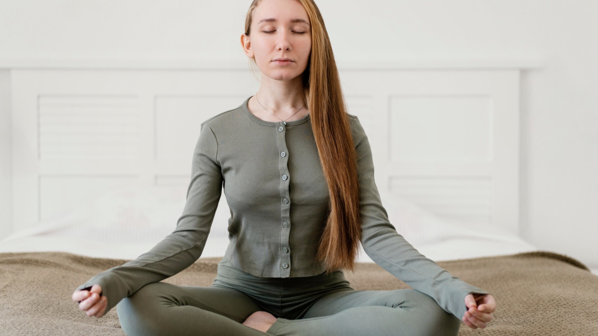 Далее сядьте в позу лотоса или просто скрестите ноги. Держите спину ровно, но постарайтесь не напрягаться. Закройте глаза и начните размеренно и глубоко дышать. Каждый вдох и выдох должны быть осознанными.