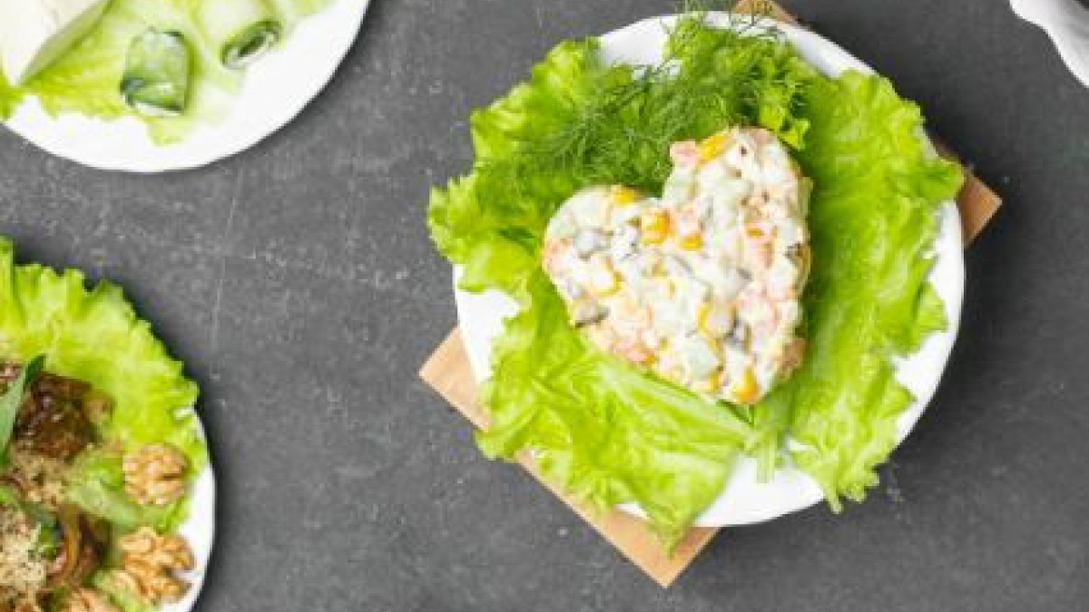 Салат «Бычье сердце» можно подавать в двух видах: выкладывать слоями или просто смешать все ингредиенты. Слоёный вариант можно выложить в виде сердца, будет выглядеть более эффектно.
