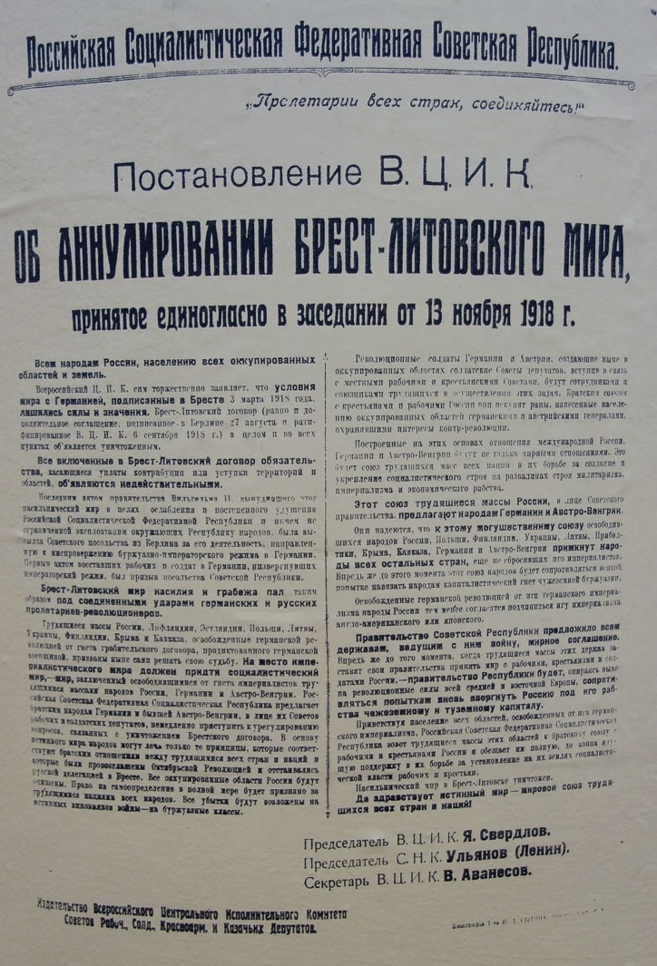 Постановление об аннулирование Брестского договора от 13 ноября 1918 года, источник: wishescards.ru
