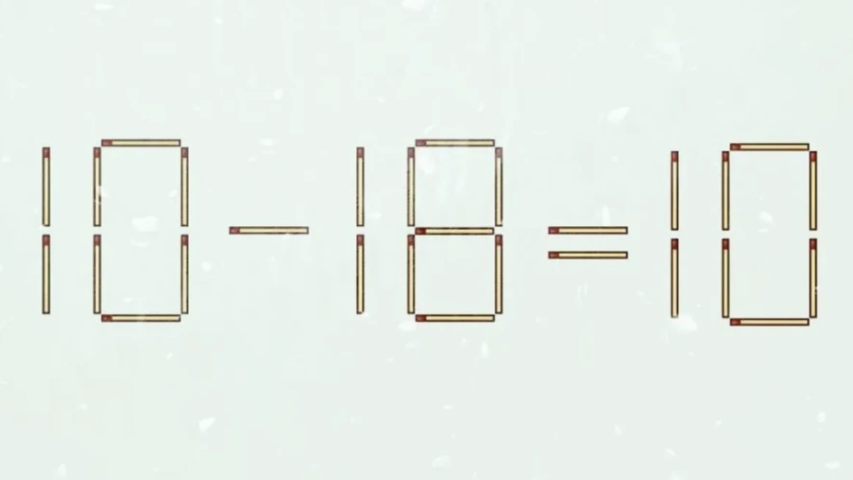 Внимательно посмотрите на картинку: «10-18=10». Этот пример с ошибкой. Чтобы его исправить, нужно переставить всего одну палочку-спичку.