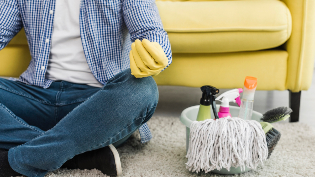 Лучше всего приготовить специальный раствор. Нужно взять 1 литр тёплой воды, 1 столовую ложку жидкого мыла, 1 чайную ложку соды, 1 столовую ложку уксуса 9% и 2-3 капельки эфирного масла.