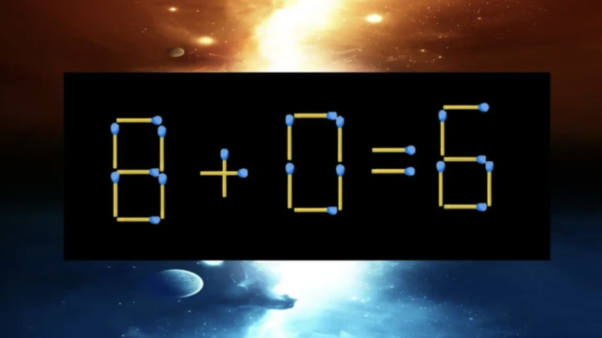 Посмотрите на картинку. На ней пример «8+0=6». Вам нужно за 15 секунд переложить 1 спичку в правильное место. Догадываетесь, куда?