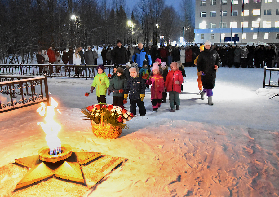 После зажжения Огня Памяти каждый желающий смог возложить цветы к мемориалу. К подножию памятника гвоздики легли и от самых юных участников — воспитанников детского сада «Сказка». Их присутствие стало живым воплощением мысли о «священном долге перед прошлым и обязательстве перед будущим».