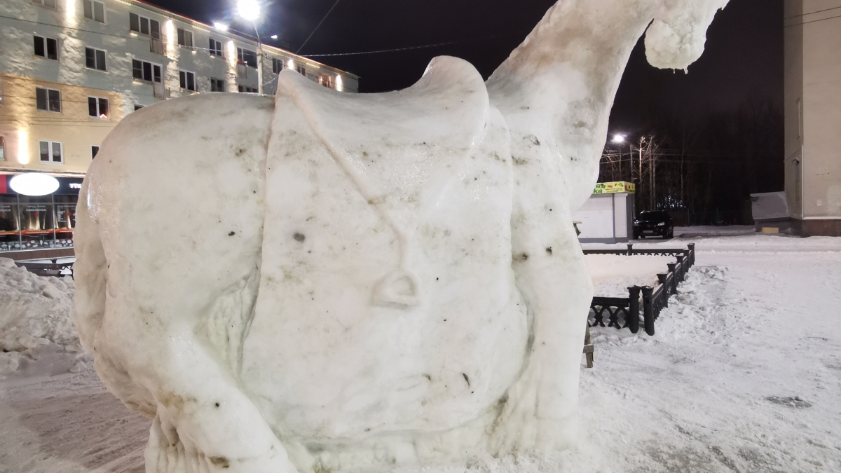 «Создание скульптуры начинается задолго до праздника. Сначала на площади устанавливают опалубку и наполняют её снегом, затем наступает самый интересный этап — формирование фигуры. Мастера тщательно продумывают детали, чтобы будущий символ был красивым, узнаваемым и обязательно удивлял своим масштабом», — поделились подробностями процесса в паблике.