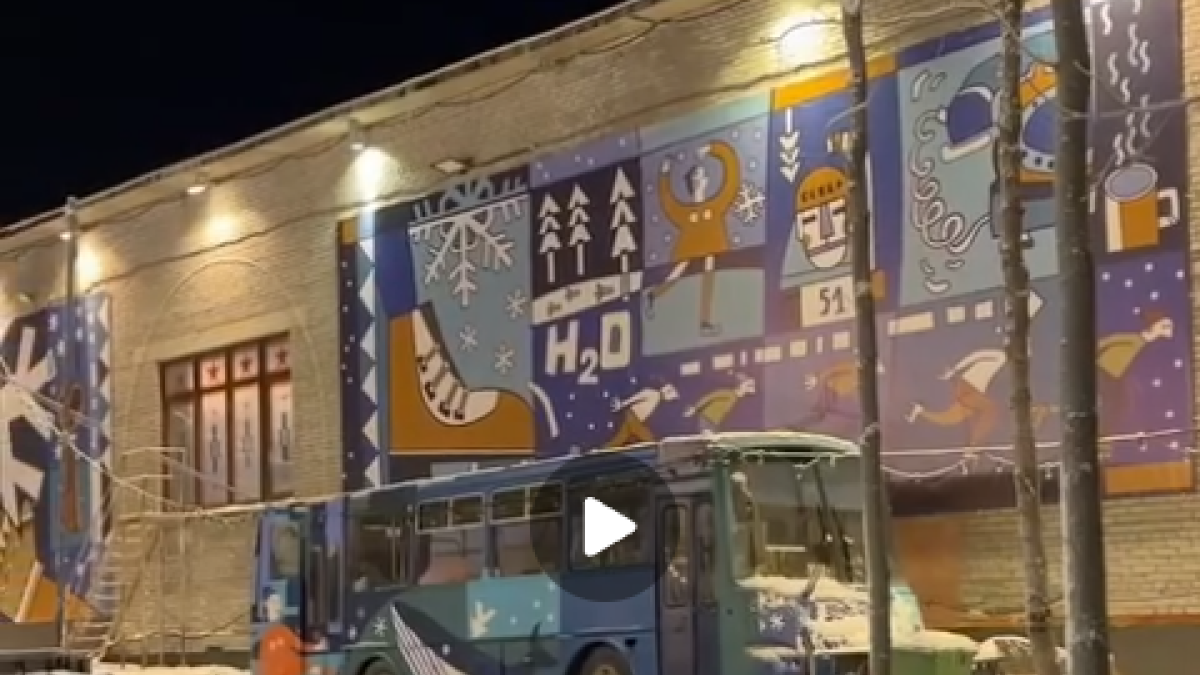 На стенах катка изображена романтическая история знакомства фигуристки и хоккеиста, но название авторской концепции объединения «КартЕЛЬ» сосредоточено на материале — «H2O».