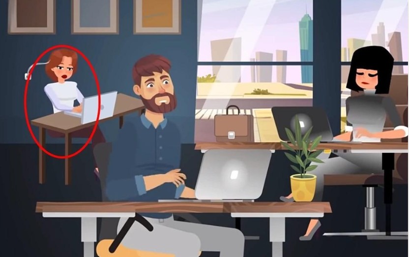Для тех, кто не нашёл ошибок на рисунке есть подсказка. У женщины слева нет стула. Она сидит на воздухе. Кроме того, кабель от ноутбука идёт к её голове.