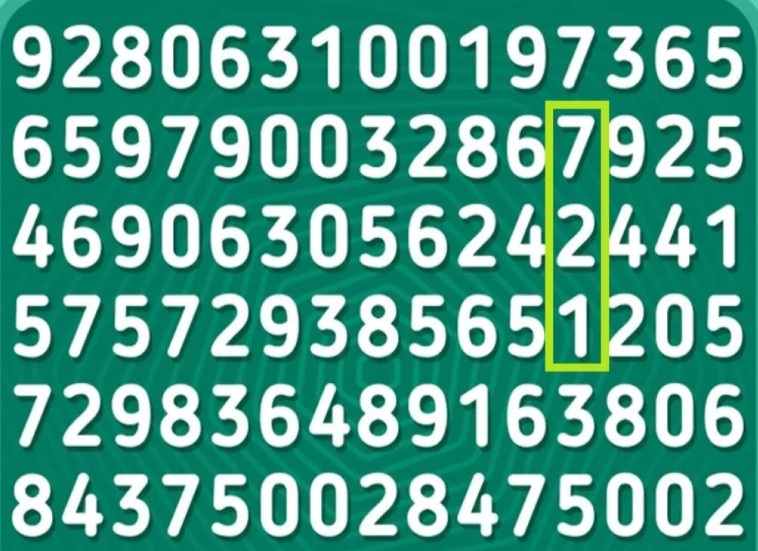 Чтобы облегчить себе поиск, разделите задание на несколько частей. Попробуйте найти на картинке сначала 7, потом 2, после 1.