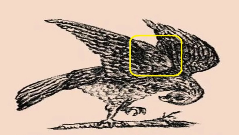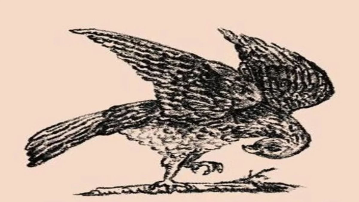 На черно-белом рисунке изображена птица. Её крылья раскинуты. Казалось бы, ничего другого на картинке нет.