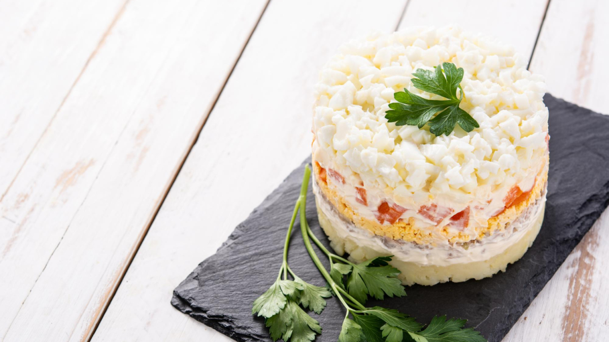 Секрет идеальной «Мимозы» начинается со сборки, как у хорошей башни. Самое главное — укладывать ингредиенты в правильном порядке (и не переругаться, потому что подготовка праздничных угощений — та ещё задачка).