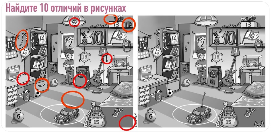 Необходимо за 54 секунды найти в комнате мальчика все числа от 1 до 18. Они спрятаны, поэтому не сразу бросаются в глаза.