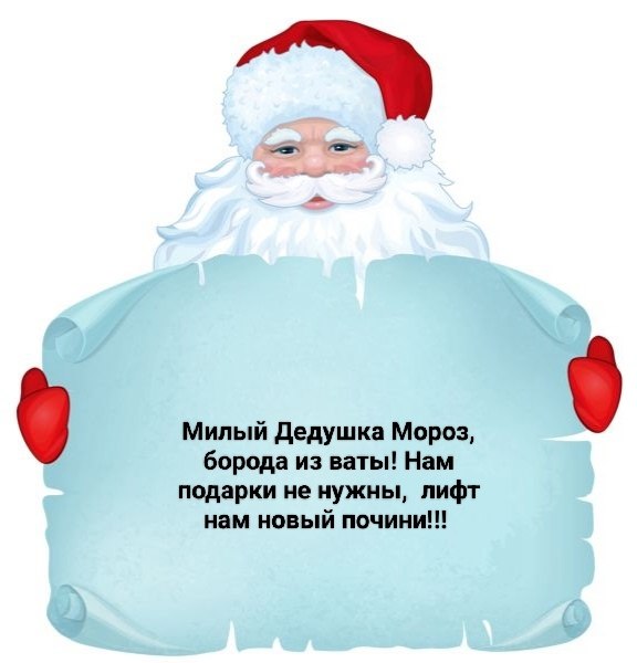 «Проезд Молодёжный, Мурманск. Ни один новый лифт на проезде не введён официально в эксплуатацию, в домах 8 (второй подьезд), 6,9,10 вообще не работают лифты с сентября месяца!!! Помогите нам», — написала Юлия Макавеева в соцсети губернатора и прикрепила мем-пожелание для Деда Мороза.