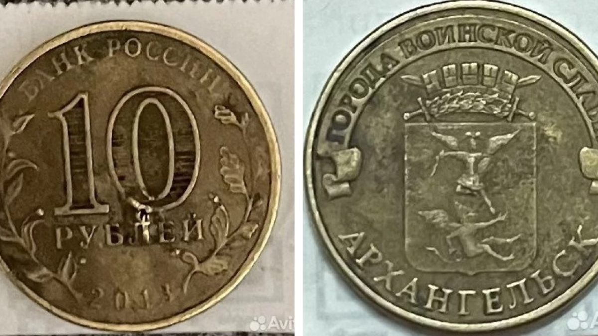 «10 рублей Архангельск 2013 г. с заводским дефектом на лицевой стороне — в виде вздутия у буквы Л», — пишет хозяин «десятки» на сайте объявлений.