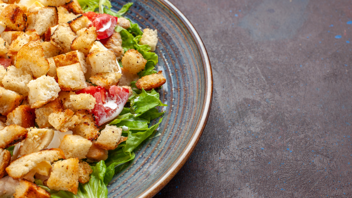 Между слоями должен быть майонез. Салат лучше не перемешивать сразу, так как сухарики размокнут. Пусть они лежат сверху.
