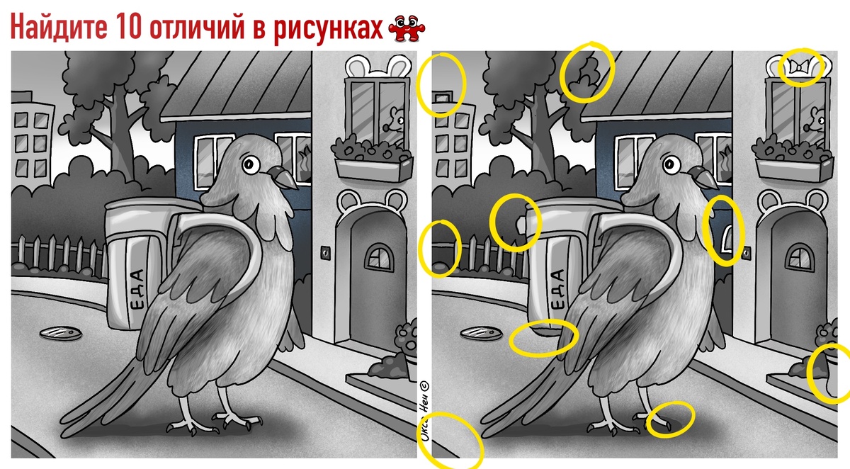 Голуби быстрые, и могут не только летать с цветами, как на советских открытках. На рисунках головоломки, где надо найти 11 отличий, голубь с коробом — занимается доставкой еды.