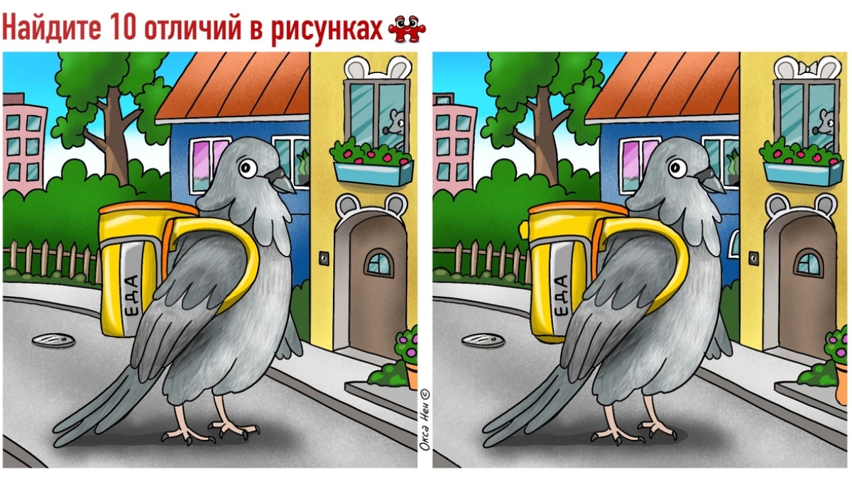 Голуби быстрые, и могут не только летать с цветами, как на советских открытках. На рисунках головоломки, где надо найти 11 отличий, голубь с коробом — занимается доставкой еды.