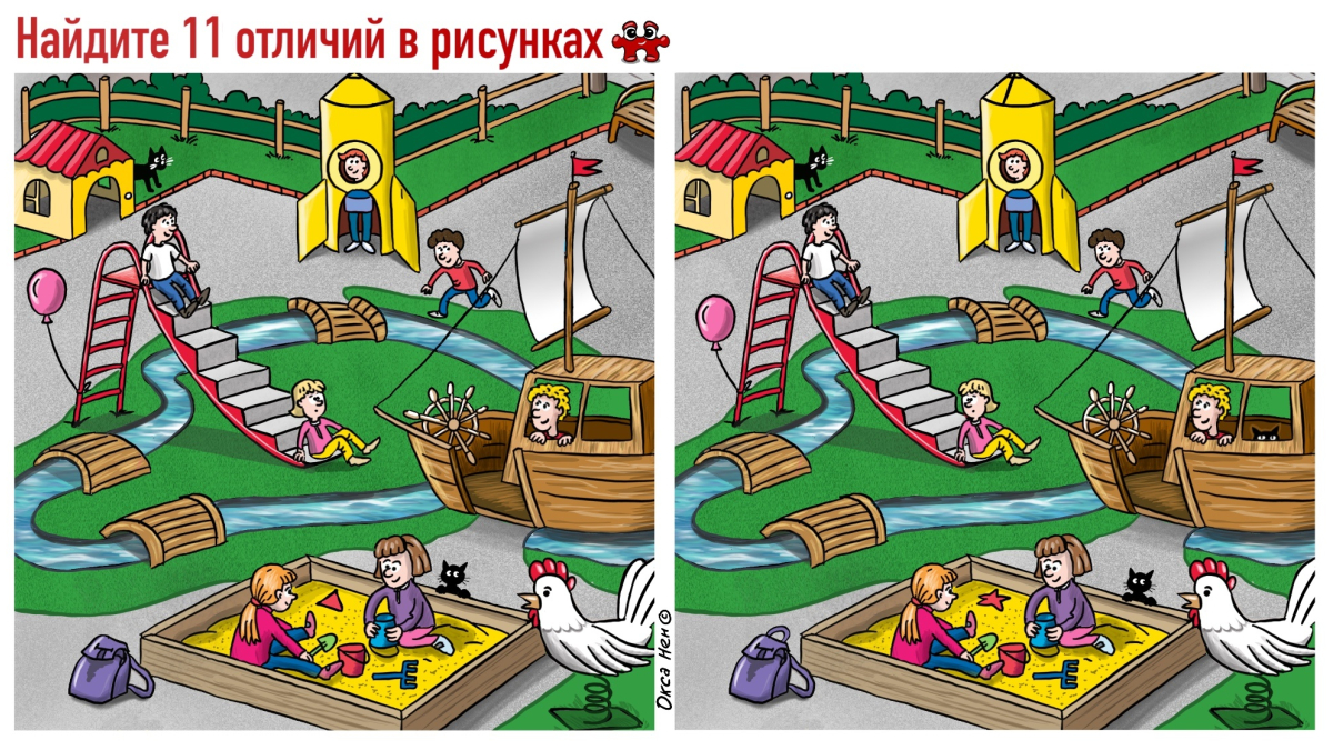 Я не нашла все отличия — неё увидела кое-какие нюансы, связанные с рюкзаком и песочницей. Возможно, вы более внимательные люди, чем я.