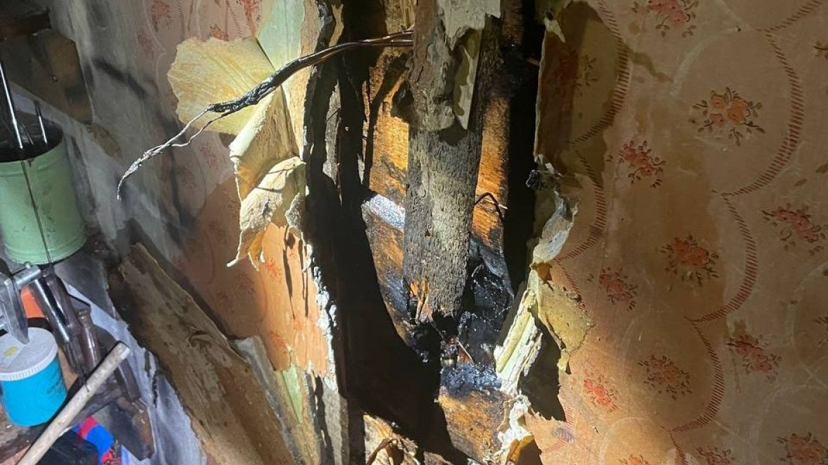 Выяснилось, что пожар произошёл в кладовой двухкомнатной квартиры. Там произошло замыкание розетки. Пожарным пришлось разбирать часть стены.