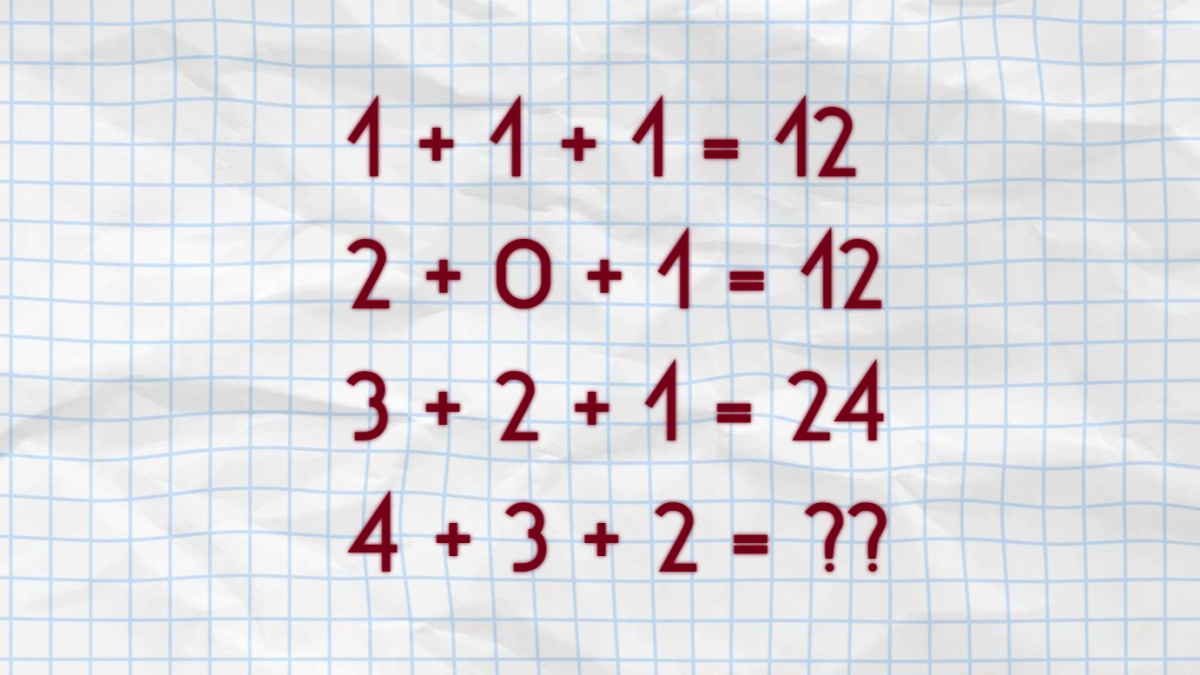 Все дело в том, что в ребусе пропущена некая закономерность. Её нужно быстро вычислить по первым трём примерам и только тогда решить четвёртый.