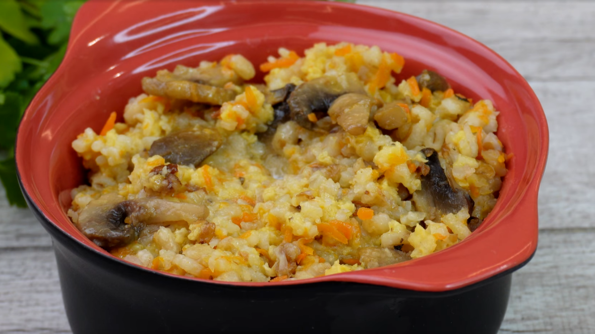 В рецепте нет мяса, молока или сливочного масла, но благодаря сочетанию грибов, овощей и круп каша получается насыщенной и сытной.