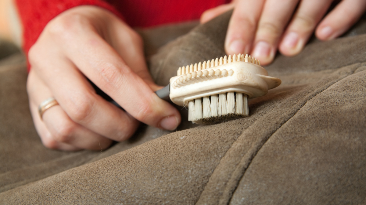 Возьмите щётку с мягкой щетиной (подойдёт старая зубная щётка для швов или более широкая для больших площадей) и тщательно, круговыми движениями, пройдитесь по всей обработанной поверхности. Вы увидите, как на ткани начинает появляться грязная пена — это и есть вытянутая из глубин грязь.