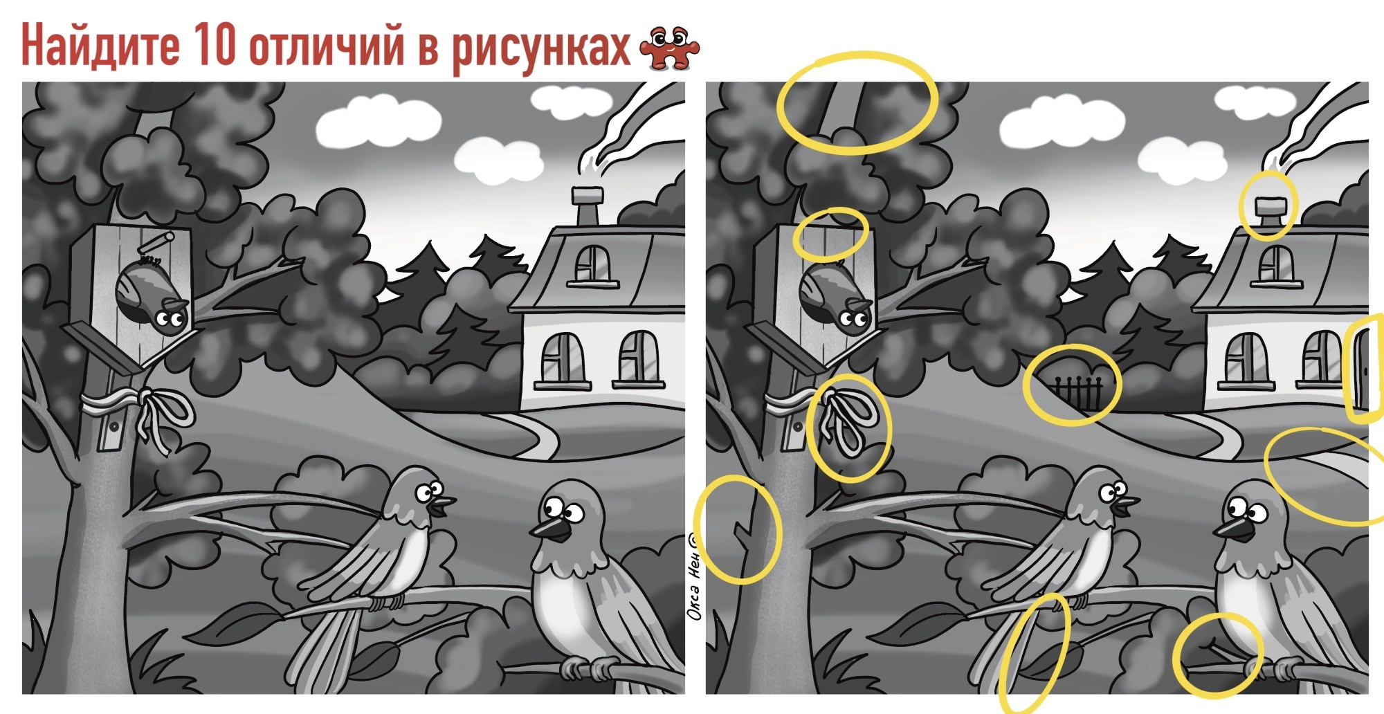 Скворечник бракодела: найдите 10 отличий на рисунках
