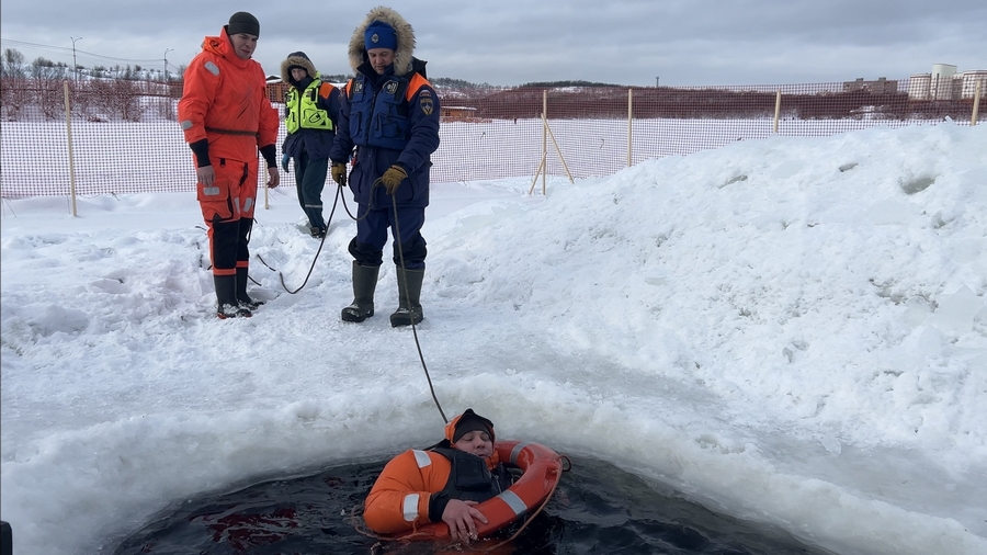 Под воду лучше не проваливаться — такой вывод можно сделать, наблюдая за попытками сотрудника регионального МЧС в термокостюме спастись и вылезти из проруби на Семёновском озере в Мурманске.