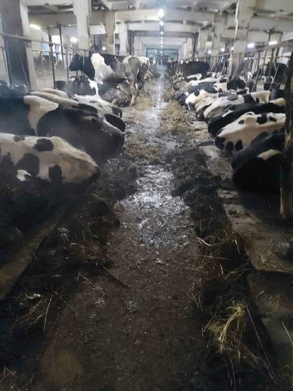 Самое страшное — смерть животных. К концу 2025 года один из 4 дворов закрыли, потому что он просто перестал наполняться коровами: умерли около 400 голов. Причин много: отсутствие лекарств с августа 2025 года, поломанная автопоилка 20-летней давности, сломанная механизированная уборка навоза.