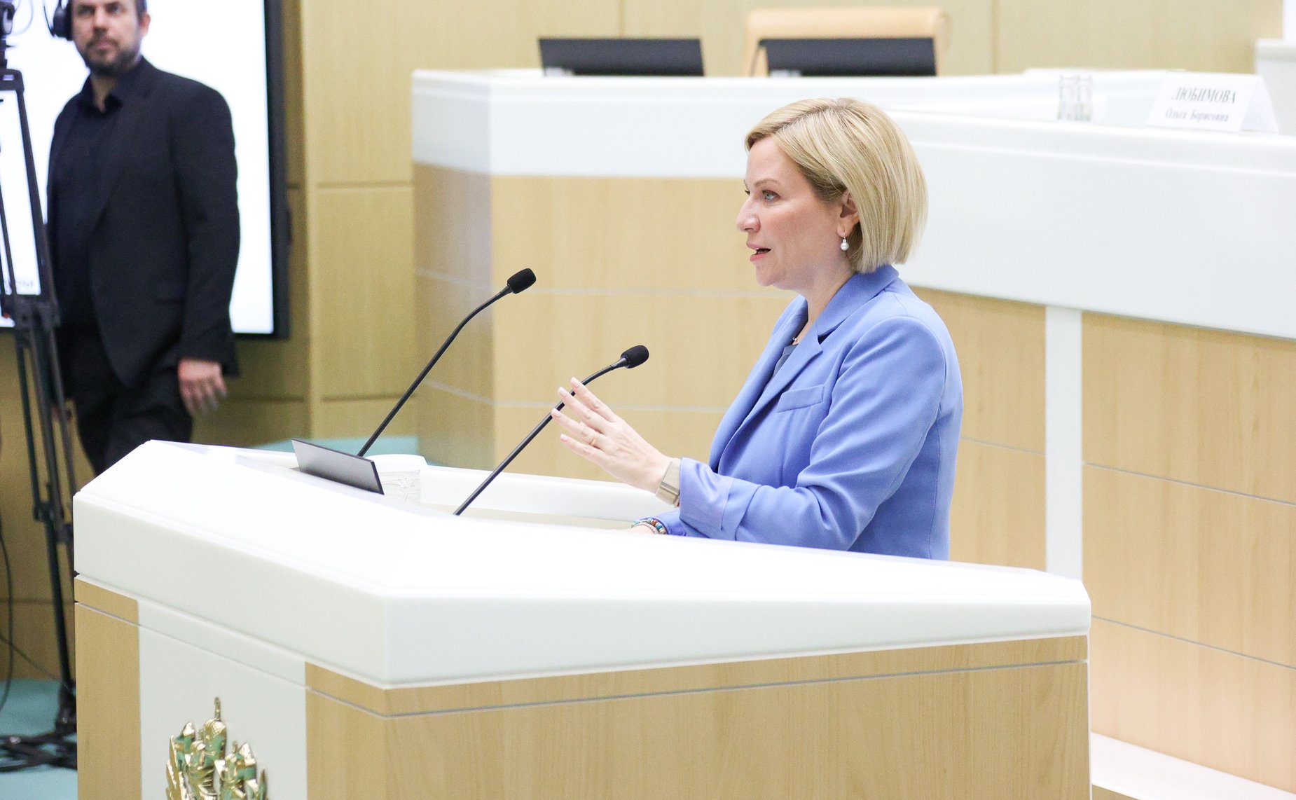 Сначала отчитался министр культуры Ольга Любимова: «Профессия артиста невероятно востребована: конкурс в профильных вузах — 49 человек на одно место, на режиссёрских факультетах — 37 человек на место. В 86 регионах работают 663 государственных театра, только федеральные в 2025 году посетили 5,6 миллиона зрителей, что на восемь процентов больше, чем в допандемийном 2019-м». Оказалось, что и о культуре можно говорить сухим языком цифр, хотя для меня, конечно, звучит это диковато.
