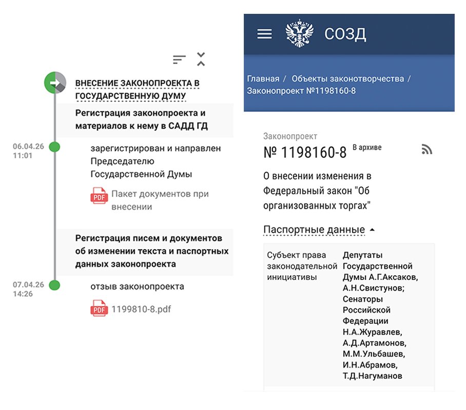«Сюжет с федеральным законопроектом о «рыбной бирже» промелькнул в Государственной Думе как комета. И потух. Бумаги сдали в архив через 27 часов 25 минут. Группа депутатов и сенаторов без объяснения причин отозвала свою инициативу. Понятно, что идея загнать на биржу рыбу как биржевой товар вызвала сомнения и подозрения у некоторых ответственных государственных руководителей. В результате законодательная попытка с «рыбной биржей» с треском провалилась. Казалось бы, тема исчерпана, все могут успокоиться. Но исчерпана ли? У людей есть вопрос. Что это было? Это что, вот так просто можно группе граждан, облечённых соответствующим правом, внести проект федерального закона, поставившего «на уши» тысячи трудовых коллективов одной из отраслей пищевой промышленности? А потом на следующий день просто взять и отозвать собственную инициативу. Как будто эта «игра» и ничего не было. А ответственность какая-то существует у депутатов и сенаторов в подобных ситуациях? Партийная или перед избирателями, для сенаторов — перед губернаторами и региональными законодательными органами. Ведь такие сюжеты являются публичными, на всю страну освещаются в СМИ, вызывают общественную реакцию и соответствующие оценки деятельности членов парламента Российской Федерации», — отметил Балашов.