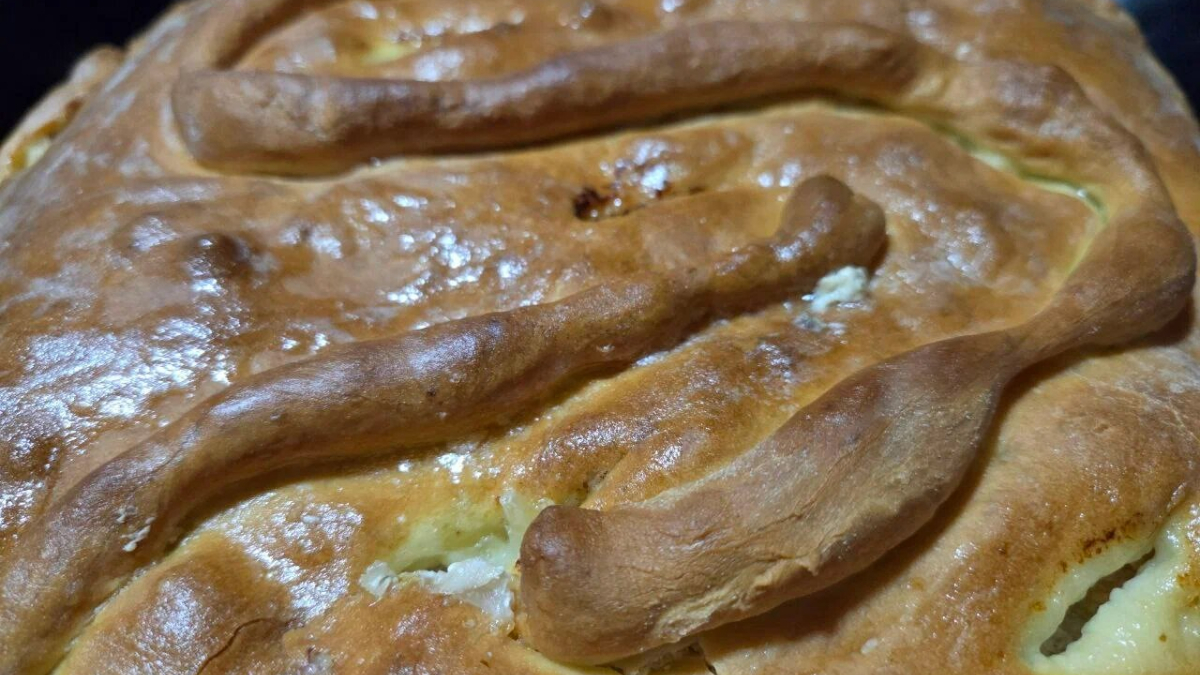 Пирог выпекается в течение 40 минут в разогретой до 180 градусов духовке. По приготовлении пирог должен постоять 15 минут (пока закипает чайник), чтобы расплавленный сыр полностью его пропитал.
