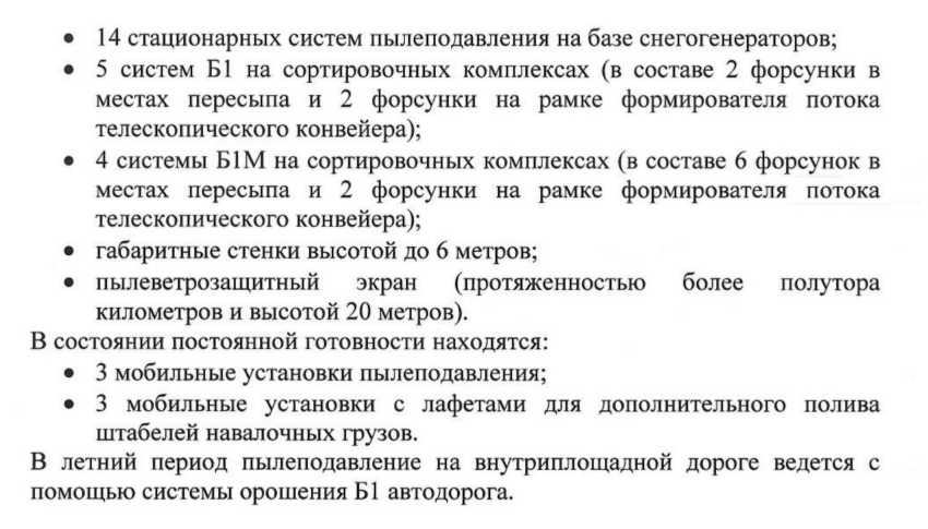 Справедливости ради, у «Портового Альянса», которому принадлежит ММТП, есть программа производственного экологического контроля, а в самом порту — средства пылеподавления как мобильные, так и стационарные, которые пресс-служба промышленной площадки почему-то решила мерить числом форсунок.
