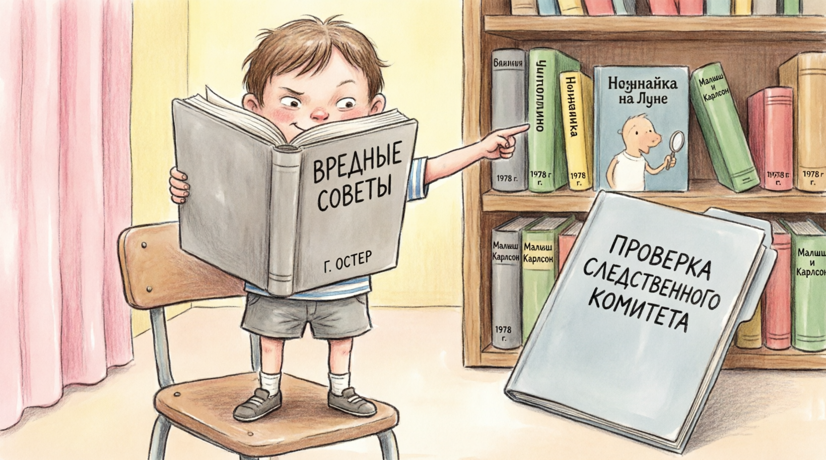 Вот в качестве примера, вызвавшего критику, и были названы произведения Григория Остера, которые, по мнению участников заседания, содержат сомнительные с педагогической точки зрения идеи. В связи с этим председатель ведомства поручил организовать проверку книг автора. «Вредные советы» Григория Остера — это сборник ироничных стихотворений для детей. Ещё в восьмидесятых годах прошлого века эти тексты публиковались в различных журналах, а первый отдельный сборник вышел в 1990 году. В дальнейшем книга неоднократно переиздавалась.