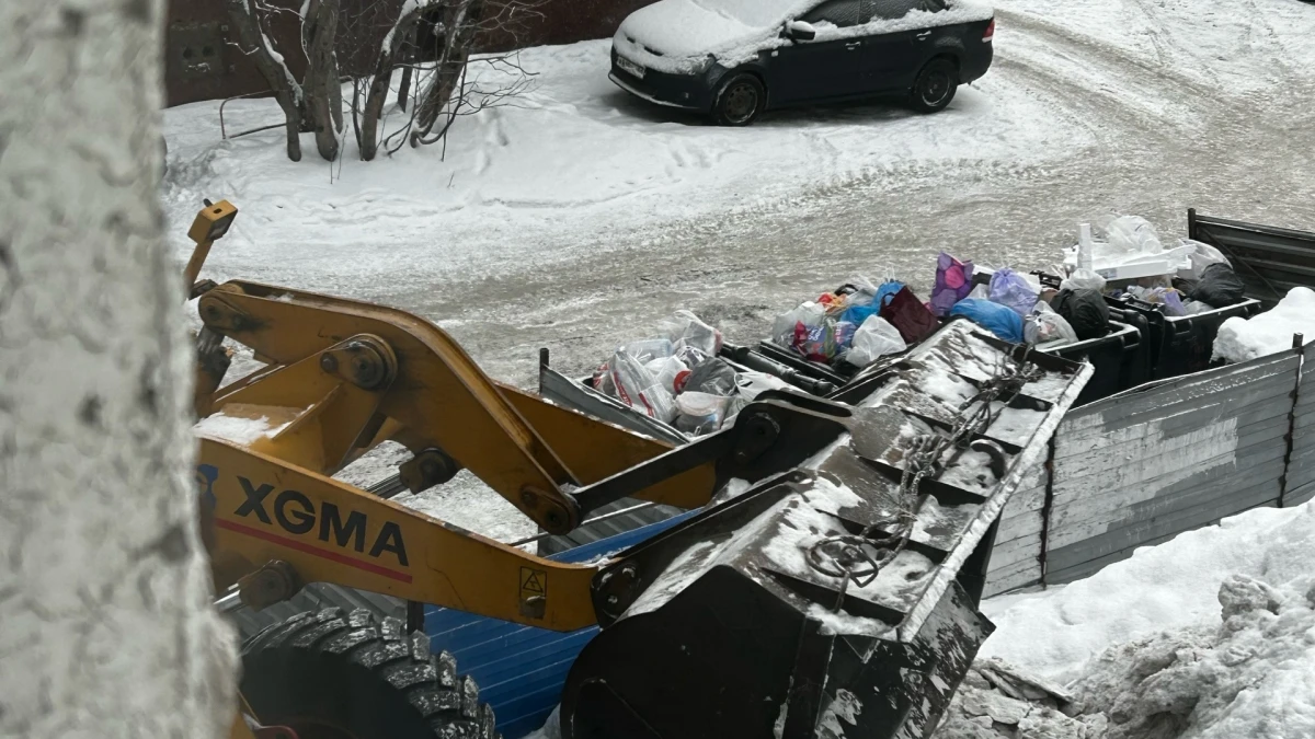 14:23В Мурманске трактор сгружает мусор под окна жильцам дома, завалили колодец