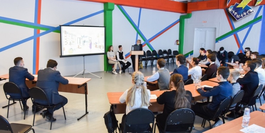 Глава администрации Мурманска Евгений Никора посетил школу № 53 на улице Папанина, где прошла презентация проекта будущего общественного пространства с местом отдыха на базе школьной библиотеки.