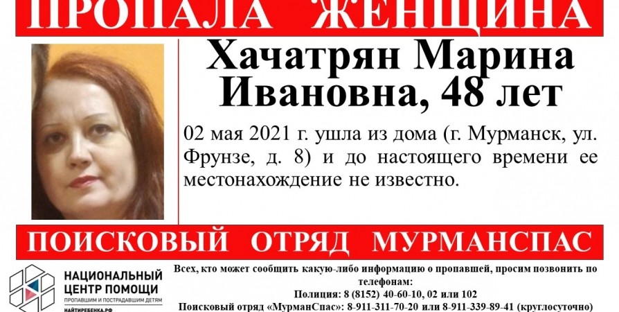 В областном центре ищут 48-летнюю Марину Хачатрян, сообщили в отряде «МурманскСпас».