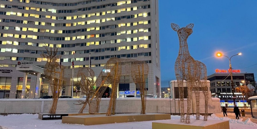 Олени знакомы мурманчанам еще с прошлого года. Их установили на том же месте, что и в прошлый раз. А фигуры медведей украсят центр столицы Заполярья впервые.